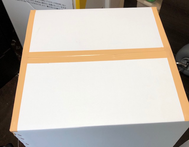 1:ハンガーボックスの底をガムテープで止めます。